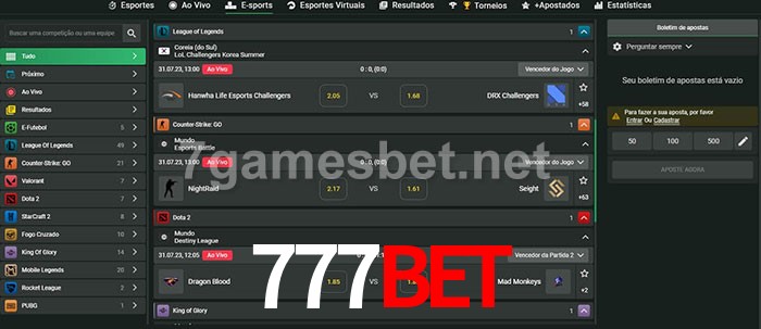 O 777bet oferece uma grande seleção de opções de apostas em e-sports com probabilidades competitivas